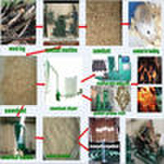 Wood Powder Machine / wood Flour Machine Tianyuan Wood Flour(Powder )Machine /wood crusher/crushing machine This wood crushing machine mainly crushing for soft mineral like that the hardness at about 3 level. Wood Powder Machine Suitable Material:Fragile material, ductile material, fibrous Material etc.solid product or other material which easily coagulated into piece. The mesh of grinding fineness in one time were at 10-325,and can change different powder or granule, fibrous at your own request. The rate of acceptability could be 100%,no residue, unnecessary for provide any drying equipment. Tianyuan Wood Powder/Flour Machine features: 1.Have advanced technology, refined manufacturing, adopted double deck structure 2.It can injected water to play the role of water-cooling, and all the bearing is water-cooled,to protect the bearing. 3.Can install a new type material,to play the role of sound-proofing, dissipation of heat 4.Low noisy, no Vibrate,durable and high output,this wood powder machine increased efficiency by 50% or more. than the traditional ones 5.This wood powder machine were consist of 3 kinds of crushing cutter. “7”type cutter, “1” type cutter centrifugal cutter(overcome the shortage of the traditional one) 6.The machine attached the fineness sorter,can control the material fineness at your own wishes. Wood Powder machine specification: Model NO.400 #500#(water-cooled)800#(water-cooling double chamber)900#(water-cooling double chamber)1020#(water-cooled)Full-automatic TypePower (kw)7.5-1111-18.522-3045-55145Rotate speed (/min)36003600330029002900Number of tools18367296192Degree of fineness (mess)10-50010-50010-50010-50010-325Feeding particle size(mm)<30mm<30-35mm<30-40mm<40-50mm<40-60mmMoisture of material<6%<6%<6%<6%<6%Weight(kg)10001600260038009000Floor area(m)4.5×1.6×3.24.6×1.8×3.57×2.5×4.37×2.8×4.312×6×4.3Usage: Suitable for: Miscellaneous wood powder ,bamboo powder, herbal medicine ,cork powder,pvc plastic,PS. Dyestuff, leather, mica, refined cotton ,seafood, condiment or dressing, ainimal feed,rice shell, corncob,peanut shell,nut shell,cavings,carbon , pesticide, charcoal, slender tires line,rigid foam, plastic product,chemical raw material. Noted: flammable and explosive materials prohibited to crushing